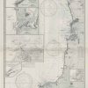 This coastal survey was printed by the U.S. Navy Hydrographic Office in Washington D.C. Details include the names of cities and waterways along the coast. Depth soundings are shown in fathoms. Other details that maybe included are lighthouses and buoy positions.
