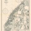This coastal survey was printed by the U.S. Navy Hydrographic Office in Washington D.C. Details include the names of cities and waterways along the coast. Depth soundings are shown in fathoms. Other details that maybe included are lighthouses and buoy positions.