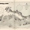 This coastal survey was printed by the U.S. Navy Hydrographic Office in Washington D.C. Details include the names of cities and waterways along the coast. Depth soundings are shown in fathoms. Other details that maybe included are lighthouses and buoy positions.