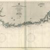This coastal survey was printed by the U.S. Navy Hydrographic Office in Washington D.C. Details include the names of cities and waterways along the coast. Depth soundings are shown in fathoms. Other details that maybe included are lighthouses and buoy positions.