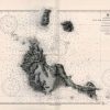 This coastal survey was printed by the U.S. Navy Hydrographic Office in Washington D.C. Details include the names of cities and waterways along the coast. Depth soundings are shown in fathoms. Other details that maybe included are lighthouses and buoy positions.