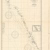 This coastal survey was printed by the U.S. Navy Hydrographic Office in Washington D.C. Details include the names of cities and waterways along the coast. Depth soundings are shown in fathoms. Other details that maybe included are lighthouses and buoy positions.