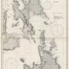 This coastal survey was printed by the U.S. Navy Hydrographic Office in Washington D.C. Details include the names of cities and waterways along the coast. Depth soundings are shown in fathoms. Other details that maybe included are lighthouses and buoy positions.