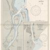 This coastal survey was printed by the U.S. Navy Hydrographic Office in Washington D.C. Details include the names of cities and waterways along the coast. Depth soundings are shown in fathoms. Other details that maybe included are lighthouses and buoy positions.