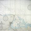 This coastal survey was printed in January 1944 by the U.S. Navy Hydrographic Office in Washington D.C. Details include the names of cities and waterways along the coast. Depth soundings are shown in fathoms. Other details included are lighthouses and buoy positions.