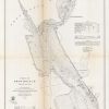 This 1865 map of Providence, Rhode Island extends as far north as East Providence, as far south as Starvegoat Island, as far east as Watchemoket Cove, and as far west as Providence. The map contains information on soundings, tides, oyster bed locations, and lighthouses. Whats present-day Corliss and Sassafras Cove was called Old Maid’s Cove. Points that are no longer labeled on present-day maps include Lovett’s Rock, Laundry Cove, Whortleberry Island, and Fuller’s Rock. The Gingerbread and Pancake Islands are referred to as Twin Island. Cranberry Island and Squantum’s Point are shown. The map also shows a Starvegoat Island that currently corresponds to Save the Bay. ‘