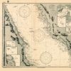 This coastal survey was printed by the U.S. Navy Hydrographic Office in Washington D.C. Details include the names of cities and waterways along the coast. Depth soundings are shown in fathoms. Other details that maybe included are lighthouses and buoy positions.