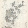 This coastal survey, produced in 1958, shows the Orkney Islands, Scotland. It was printed by the U.S. Navy Hydrographic Office in Washington D.C. Details include the names of cities and waterways along the coast. Depth soundings are shown in fathoms. Other details that maybe included are lighthouses and buoy positions.