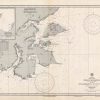 This coastal survey was printed by the U.S. Navy Hydrographic Office in Washington D.C. Details include the names of cities and waterways along the coast. Depth soundings are shown in fathoms. Other details that maybe included are lighthouses and buoy positions.