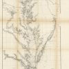 This black and white, antique coastal survey was made for the United States Coast Survey. The surveys provide depth readings and notes on important coastal characteristics of the area mapped. The names of harbors, rivers, islands, light houses, channels, shoals, capes, inlets, and coastal towns are identified on the map. These charts show areas that have likely undergone significant changes due to modifications and recessions of coastal lands, making them fascinating to anyone interested in local geography and history. Note: Age toning around the folds in these maps is quite common. Map is sold folded as issued.