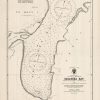 This coastal survey was printed by the U.S. Navy Hydrographic Office in Washington D.C. Details include the names of cities and waterways along the coast. Depth soundings are shown in fathoms. Other details that maybe included are lighthouses and buoy positions.