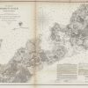 This 1857 nautical chart of Woods Hole in Massachusetts provides information on bottoms, soundings, tides, and also contains sailing directions for the area. The chart extends as far south as Naushon Island, as far north as Quamquisset Harbor, as far west as Wepecket Island, and as far east as Wood’s Hole. Some topographic detail is shown; the map also shows lakes, harbors, a church, a yellow house, a blacksmith shop, and more. Nobska Lighthouse, although not labeled this name on the map, is shown beneath present-day Falmouth Heights near what was called Nobska Point. Currently, Nobska Point sits near Uncatena Island. Present-day Ram Island, Grassy Island, Pine Island and Little Harbor are labeled. What’s called Bluff Island is now Devil’s Foot Island. While Uncatena Island is identified, Bull Island, Goat’s Neck, Monohansett Island, and Cedar Island are not.