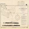 This coastal survey was printed by the U.S. Navy Hydrographic Office in Washington D.C. Details include the names of cities and waterways along the coast. Depth soundings are shown in fathoms. Other details that maybe included are lighthouses and buoy positions.