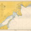 This coastal survey was printed by the U.S. Navy Hydrographic Office in Washington D.C. Details include the names of cities and waterways along the coast. Depth soundings are shown in fathoms. Other details that maybe included are lighthouses and buoy positions.