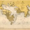 This coastal survey was printed by the U.S. Navy Hydrographic Office in Washington D.C. Details include the names of cities and waterways along the coast. Depth soundings are shown in fathoms. Other details that maybe included are lighthouses and buoy positions.