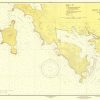 This coastal survey was printed by the U.S. Navy Hydrographic Office in Washington D.C. Details include the names of cities and waterways along the coast. Depth soundings are shown in fathoms. Other details that maybe included are lighthouses and buoy positions.
