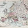 This hand colored map was made by O.W.Gray and son in 1886 for “The National Atlas”. Europe is illustrated on this map. An inset shows an ethnographic map of Europe at a smaller scale than the main map. Countries are distinguished by bright pastel colors. Other details include the names of countries, and illustrations of mountains, rivers, railroads, and lakes.
