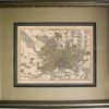 This finely detailed city map is from the 1896 Johnsons Universal Cyclopedia. Streets, parks, cemeteries and public buildings are depicted. This antique map of Washington DC is framed with a modern feel using a silver ornate frame, with a light sage/ochre fabric outer mat, a black beaded fillet and a charcoal inner mat. This would fit well in anyone’s home!’