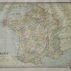 This map was published for “Crams Unrivaled Family Atlas of the World” in 1885. France is illustrated on this page, pastel colors differentiate each county. Cities, towns, transportation routes and topographical features are noted. Great detailing.
