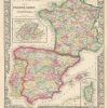 Mitchell’s 1865 Map of France, Spain, and Portugal