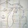 Basic GLO map with no towns marked. Part of National Boundary shown in Lake Superior. Shows all of Lake Michigan and inset of Isle Royale.
