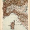 Adolf Stieler produced this exceptional map in 1905 for his “Hand-Atlas”. Maps produced by Stieler are known for their exceptional lithography and details include the names of regions and many cities, rivers, lakes, mountains, canals, railroads and other travel routes.