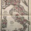 Johnson and Browning produced this steel plate, hand colored map for “Johnsons New Illustrated Family Atlas” in 1862. Italy (divided by north and south) is illustratedon this detailed, double page map. An inset shows Malta. Regions are distinguished by bright pastel colors. Other details include lakes, rivers, mountains, railroads,major roads, and the names of regions and important cities.
