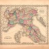 Art Source International is proud to offer this map of Northern Italy from the 1856 edition of Coltons Atlas of the World. Colton atlases, especially those from the 1850’s, have become increasingly rare. The Colton maps were engraved by steel plates rather than by wax engraving, which was the most common method used at this time. These maps are very detailed in beautiful hand colored pastels, and feature Colton’s signature 3/4 inch border. This map shows countries and/or regions, cities, towns and villages, transportation routes, common roads, canals, rivers and lakes, and other geographical features.