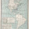 This map was made by George F. Cram for “Crams Unrivaled Family Atlas” in 1883. The map on this page illustrates North and South America with identification of exploration expeditions that discovered the area. Two charts beside the map show the process of settlement for eight time periods and the names and dates of important discoveries of explorers.