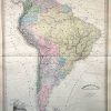 Exceptionally large, detailed steel-plate map, in French, of South America in the mid-1800s. Excellent detail of mountains and rivers, as well as nautical information. Gives information on currents, winds, sea ice, and major shipping routes. Diagram at bottom left gives heights of highest mountains, as well as the vegetation zones at different elevations.