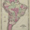 Near the forefront of the atlas publication industry for a quarter century was mapmaker and aggressive marketer Alvin Jewitt Johnson. Around 1860, in a transaction that remains somewhat mysterious, Johnson acquired a set of detailed plates from J.H. Colton, one of the foremost mapmakers of the century, and used them to print the Johnson atlas that was to find its way into homes across the country. Johnsons New Illustrated Family Atlas was first published in 1860, and today these maps have become prized collectibles and true works of cartographic art. The attention to detail and fine hand coloring of these maps make them some of the best collectibles maps from the 19th century. This double page map illustrates South America. Countries, cities, towns and topographical features are noted. Great detailing and coloring.