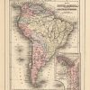 This map of South America (with an inset map showing the proposed Atrato-Inter-Oceanic Canal Routes, for connecting the Atlantic and Pacific Oceans) was made by S. Augustus Mitchell for “Mitchells New General Atlas” published in 1888, by WM. M. Bradley & Co. The well maintained maps in this atlas feature Mitchell’s characteristic pastel coloring and abundant details of geographical features. Details include the names of countries, cities, towns, transportation routes, mountain ranges, rivers and lakes. These 1888 maps offer a fascinating perspective of areas that have since undergone significant growth and change, in addition to their value as great examples of Mitchell’s work.