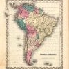 Art Source International is proud to offer this map from the 1859 edition of Coltons General Atlas. Colton atlases, especially those from the late 1850’s, have become increasingly rare. The General Atlas was the first single edition atlas published by the Colton brothers succeeding the expensive two volume Atlas of the World. These maps have the signature ‘ inch Colton border surrounding each map. The Colton firm refused to compromise quality, choosing to compete for sales in the finer quality international market rather than the cheap domestic one. Because of this, all maps were engraved by steel plates rather than by wax engraving which was the most common method used at this time. This map of South America, is very detailed with identification of countries, regions, islands, cities, rivers, lakes and mountain ranges. Each map has beautiful muted red, green, tan, pink, and yellow hand coloring.
