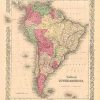 We are excited to offer maps from the 1871 edition of Coltons Atlas of America. In our 25 years these are the first Colton maps from 1871 we have been able to acquire. The Colton firm refused to compromise quality, choosing to compete for sales in the finer quality international market rather than the inexpensive domestic one.Because of this, all maps were engraved by steel plates rather than by wax engraving which was the most common method used at this time. This map of South America is very detailed with identification of regions, important cities, rivers, lakes, mountain ranges, and railroad lines. Each map has beautiful red, green, tan, pink, and yellow hand coloring used to distinguish regions. ‘