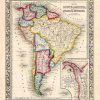This exceptional map is from “Mitchells New General Atlas” published by S. Augustus Mitchell, Jr in 1861. This steel plate engraved map has original hand coloring and crisp engraved lines. Maps from this 1861 ( 2nd edition) atlas have become very difficult to acquire.Surrounding this map of South America ahowing its politics divisions is a ‘ inch floral border. Counties, provinces, many cities,rivers and lakes are identified on this beautiful map. An inset map showing the proposed Atrato-Inter-Oceanic Canal Routes for connecting the Atlantic and Pacific Oceans is included.