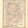 Art Source International is proud to offer this map of Alabama from the 1856 edition of Coltons Atlas of the World. Colton atlases, especially those from the 1850’s, have become increasingly rare. The Colton maps were engraved by steel plates rather than by wax engraving, which was the most common method used at this time. These maps are very detailed in beautiful hand colored pastels, and feature Colton’s signature 3/4 inch border. This map shows cities, towns and villages, transportation routes, common roads, canals, rivers and lakes, and other geographical features. ‘