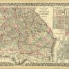 This map of the southern states of Georgia and Alabama was made by S. Augustus Mitchell in 1872. The traditional ivy border, and hand coloring make this map beautiful. This state map of shows transportation routes, railroads, rivers cities, towns and counties. Inset maps of Savannah Georgia and the city of Atlanta are also included. Counties are distinguished by various pastel colors. Very Detailed!