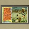 Founded in the 1860s, the Arbuckle Coffee Company grew and expanded with 19th century America. It was a staple the cowboys carried with them on the trail, and a commodity commonly found in American homes at the time. The Arbuckle Company made a unique advertising effort in the late 1880’s and began to enclose small decorative trade cards in their packages of coffee. The front of the card contained a colorful image of children, flowers, sports or even a map, while the back of the card had their advertising and some descriptive information. Later these trade cards became so collectible that the company focused on their success and issued them separately as premiums. These charming map cards illustrate beautifully the history and character the lands. Each map shows lakes and rivers, cities and towns, forts, the population, and area in square miles. Each card measures 3 1/4″ x 5 1/4″. The matted size is 8 x 10 inches.