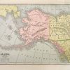 This colorful map was produced by George F. Cram in 1883, and appeared in “Cram’s Unrivaled Family Atlas of the World”, Chicago Illinois. This early Cram map appears early in the mapmakers career, who was one of the first American map makers to start using Lithographic Coloring techniques. Lithographic color made for detailed and accurate coloring of maps. This state maps shows great detail including counties, cities and towns, lakes and rivers, mountains and other topographical marks, and most important the existing railroad net work in 1883. Over all a great map, includes decorative border.