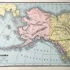 This detailed map of Alaska was printed in the “Peoples Family Atlas of the World,” published in 1889. This map shows a great deal of topographical information, including lakes, mountains, and rivers.