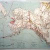 Fantastic Map of Alaska! Major note, it shows gold fields and reported locations of gold fields. Has two inset maps of the Aleutian Islands and “From Juneau to Forty Mile Creek”. Has a table of distances. Map shows land offices, reservations, railroads, timber limits, gold, silver, copper, coal, and churches.