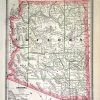 This detailed map of the state of Arizona was printed in the “People’s Family Atlas of the World,” published in 1885. This map, which shows a great deal of topographical information, including lakes, rivers and mountains, has all counties outlined in green and state bounderies outlined in pink. Railroad lines are also shown.