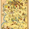 This charming antique pictorial map was published in 1935 by the famous mapmaker & illustrator, Ruth Taylor (White). These illustrated maps came from the atlas, “Our U.S.A – A Gay Geography,” with text by Frank Taylor & the maps done by Ruth Taylor. Ruth Taylors maps have become increasingly rare. Her whimsical maps are bold, colorful, and full of life; showing the local feel, cultural stereotypes, industries and activities of the area. These maps have become very difficult to find and would be a great addition to any map collection.