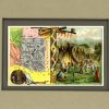 Founded in the 1860s, the Arbuckle Coffee Company grew and expanded with 19th century America. It was a staple the cowboys carried with them on the trail, and a commodity commonly found in American homes at the time. The Arbuckle Company made a unique advertising effort in the late 1880’s and began to enclose small decorative trade cards in their packages of coffee. The front of the card contained a colorful image of children, flowers, sports or even a map, while the back of the card had their advertising and some descriptive information. Later these trade cards became so collectible that the company focused on their success and issued them separately as premiums. These charming map cards illustrate beautifully the history and character the lands. Each map shows lakes and rivers, cities and towns, forts, the population, and area in square miles. Each card measures 3 1/4″ x 5 1/4″. The matted size is 8 x 10 inches.