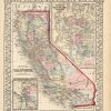 The Mitchell company was one of the first to try out the new technique of engraving on steel plates, experimenting with steel almost 20 years before the rest of the publishing industry. He was printing with steel in the early 1830s; the general switch to steel was approximately 1850. During the early years of the company, Mitchell published mainly maps and travel guides. In 1860, Mitchell started producing “Mitchell’s New General Atlas”, and Mitchell Sr. retired and turned the business over to his son of the same name. The New General Atlas was published until 1893. Today Mitchell maps are sought after for their fine engraving, bright coloring, and attention to detail. They are some of the finest maps produced in the 1860’s. This map produced in 1867, has Mitchell’s unique floral border, and beautiful hand coloring. This map details California,counties, cities, towns, transportation routes, and topographical features are illustrated. Two inset maps are included showing the San Francisco Bay and Vicinity and a Map of the Settlements in the Great Salt Lake Country,Utah.