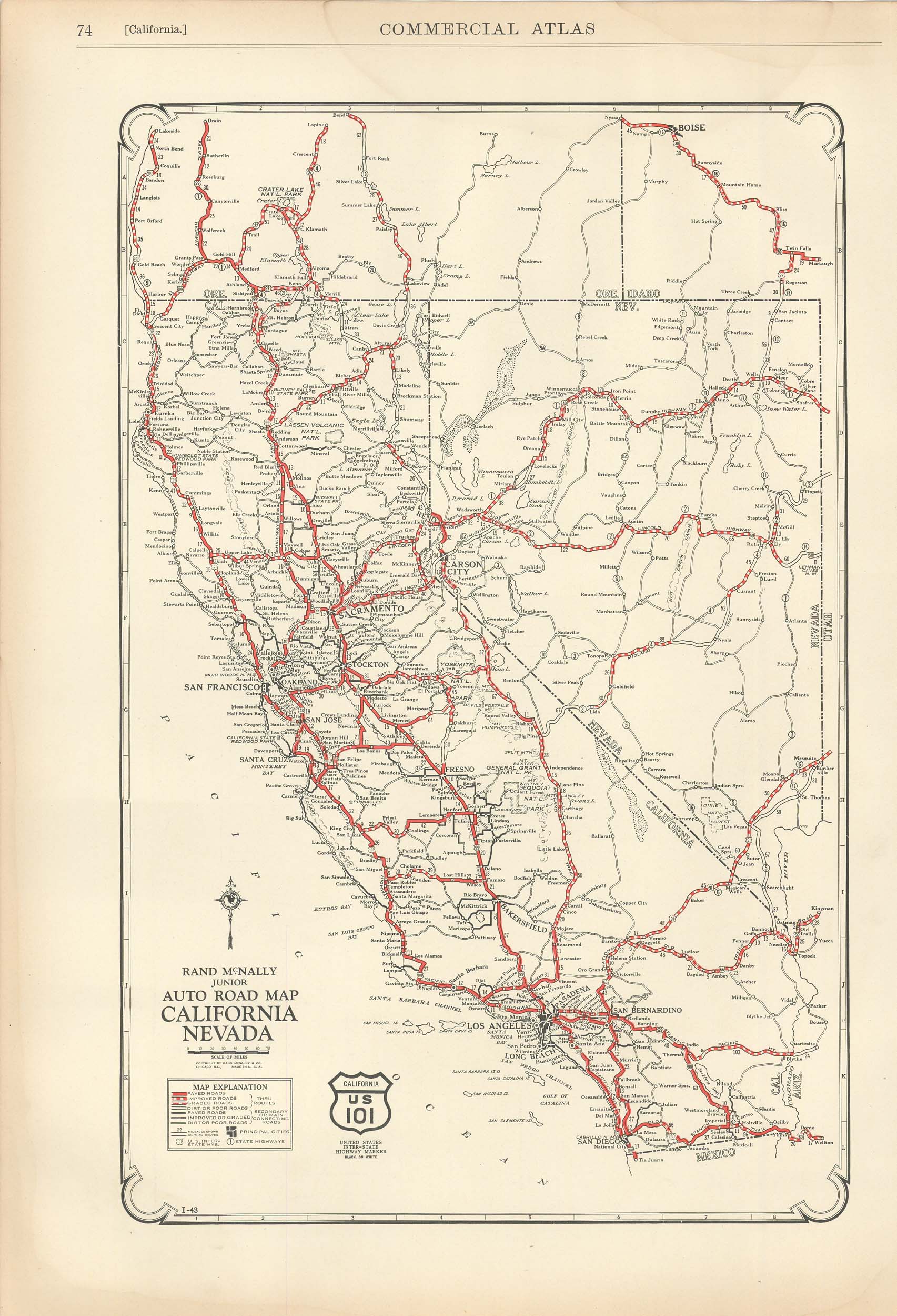 This map was produced by Rand McNally and Co. as part of its 1928 Commercial Atlas of America. These maps are some of our favorite maps because of the large size of each map sheet. The detail shown on each map is exceptional because of the map size. These maps were intended to be used by business for shipping and other uses. Roads, railroads, rivers, and buildings are clearly shown. There is more detail on these maps than any others during this time period. Without a doubt Rand McNally and Co. did the best job showing individual state maps dedicated to auto roads.