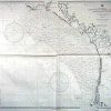 WWII Coastal Survey Map of Lower California.Chart #1493Originally published at Washington D.C. July 1896. Thismap is very detailed showing land masses, roads, towns,rivers, lakes, swamps, some topographic marks, towers,harbors, ledges, beaches, rocks, points, heads, shoals,fish trap areas, prohibited areas, coves, railroads,intracoastal waterways, and depth readings all along thecoast. This map would make a great gift if you live in thisarea or know someone who does.