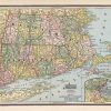 George F. Cram produced this map of Massachusetts, Rhode Island, and Connecticut for Crams Unrivaled Atlas of the World in 1889. Counties, cities, towns, railroads, and topographical features are illustrated on this map. Also included is an inset map of Boston and vicinity.