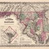 Art Source International is proud to offer this map of Delaware and Maryland (with an inset map of the District of Columbia) from the 1866 edition of Coltons General Atlas. Colton atlases, especially those from the late 1860’s, have become increasingly difficult to find. This highly detailed map is distinguished by its hand coloring and signature 3/4″ border. Counties, cities and towns, railroads, canals, and various geographic features are shown on this map.