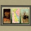 Founded in the 1860s, the Arbuckle Coffee Company grew and expanded with 19th century America. It was a staple the cowboys carried with them on the trail, and a commodity commonly found in American homes at the time. The Arbuckle Company made a unique advertising effort in the late 1880’s and began to enclose small decorative trade cards in their packages of coffee. The front of the card contained a colorful image of children, flowers, sports or even a map, while the back of the card had their advertising and some descriptive information. Later these trade cards became so collectible that the company focused on their success and issued them separately as premiums. These charming map cards illustrate beautifully the history and character the lands. Each map shows lakes and rivers, cities and towns, forts, the population, and area in square miles. Each card measures 3 1/4″ x 5 1/4″. The matted size is 8 x 10 inches.